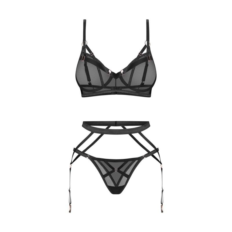 Este conjunto de 3 piezas es una declaración de feminidad moderna: pura, libre y absolutamente irresistible. Diseñado para mujeres que celebran su autenticidad con estilo, este conjunto combina líneas limpias con una estética refinada y materiales de lujo. El sujetador con aros realza el busto con una silueta natural y segura, mientras los detalles en oro rosa aportan un brillo sutil y sofisticado. El liguero minimalista, con correas ajustables y cierre de gancho multinivel, moldea suavemente las curvas sin perder comodidad. El tanga a juego completa el conjunto con un diseño contemporáneo que equilibra sensualidad y elegancia.