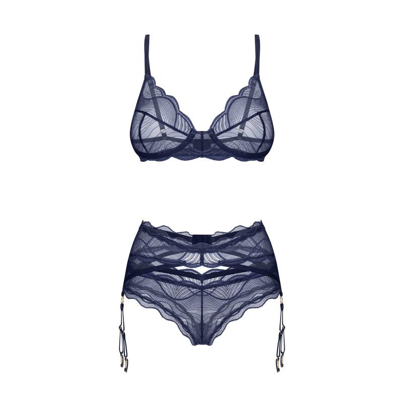 Conjunto de 3 piezas en encaje azul marino, diseño refinado y sensualidad en cada línea. Perfecto para brillar con elegancia y confianza.