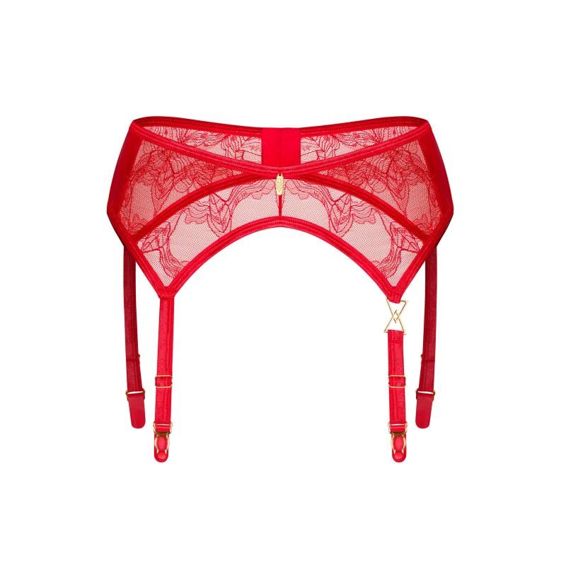 Descubre el poder de la elegancia con este liguero rojo de encaje, realzado con herrajes dorados que reflejan sofisticación y lujo. Sus tirantes ajustables y cierre seguro aseguran un ajuste perfecto, mientras su diseño fusiona sensualidad, glamour y estilo atemporal.