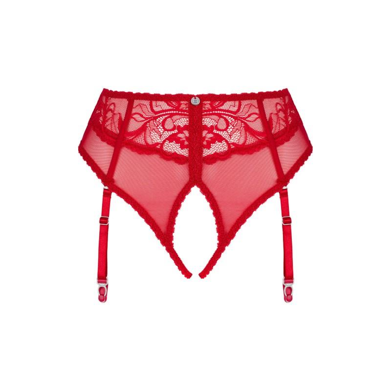 Cuando la noche promete calor y deseo, elige las braguitas con liguero Pasión Ardiente. Confeccionadas en encaje rojo vibrante, despiertan la imaginación con su diseño provocativo y su textura suave al tacto. El encaje floral envuelve tus curvas con elegancia, mientras la entrepierna abierta invita a un juego de seducción sin límites. El liguero integrado, con correas ajustables y extraíbles, permite un ajuste perfecto y la posibilidad de combinarlo con tus medias favoritas. Un diseño pensado para mujeres seguras, apasionadas y dispuestas a brillar con cada movimiento. Perfecto para transformar una noche común en una experiencia ardiente e inolvidable.