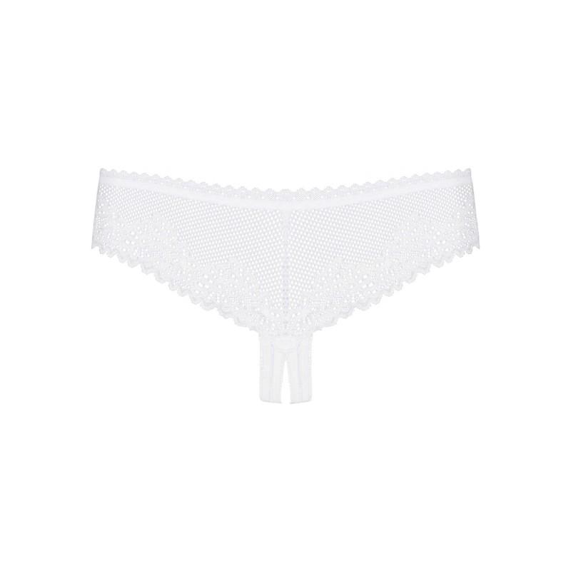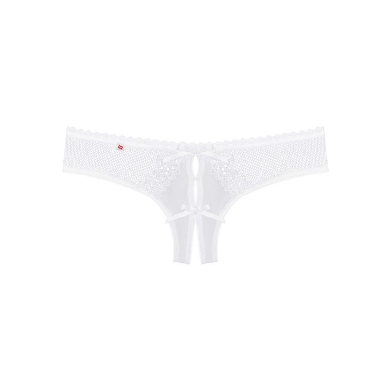 Déjate envolver por la sutileza y el deseo con esta tanga blanca abierta erotica, una pieza diseñada para resaltar tu feminidad con elegancia y picardía. Su tejido de micromalla con delicado encaje floral acaricia la piel con suavidad, mientras el pequeño lazo de satén blanco en el frente añade un toque de ternura irresistible. La abertura en la entrepierna aporta un aire atrevido y seductor, ideal para sorprender en una noche especial o sentirte poderosa en tu intimidad.
