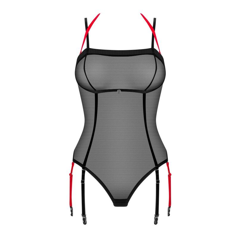 Siente el poder de tu feminidad y conquista cada mirada con el Body de malla transparente con detalles de terciopelo y tirantes ajustables. Realza tus curvas y enciende la pasión con elegancia
