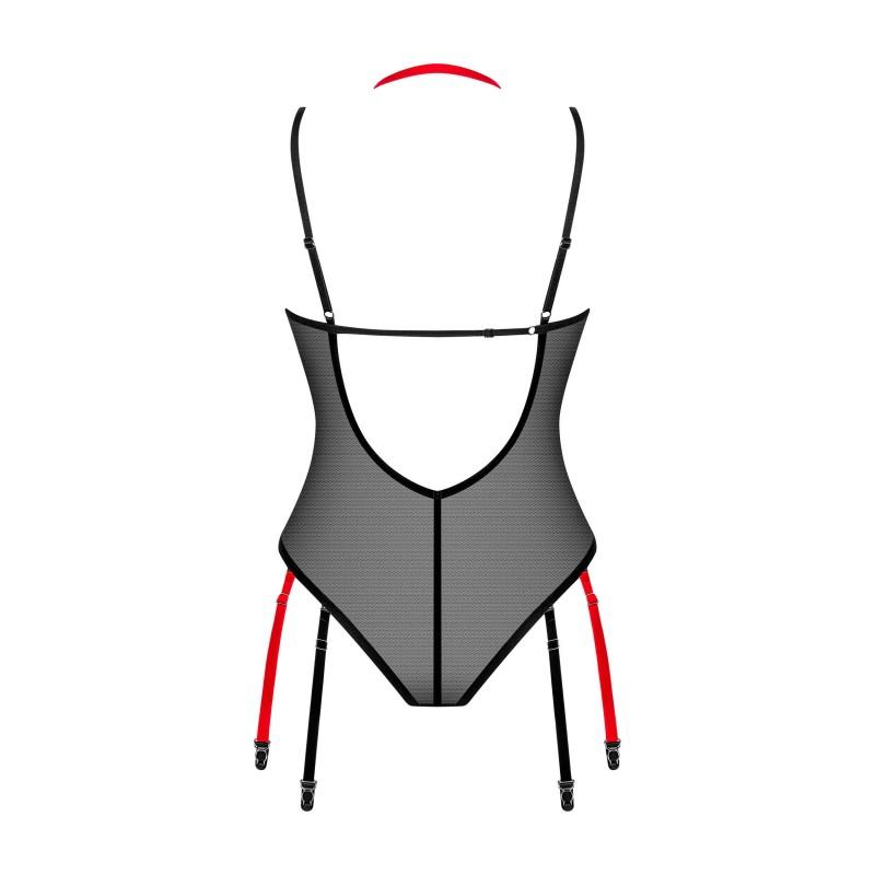 ¿Sueñas con una cita romántica y sensual donde seas el centro de atención?, el body es la prenda perfecta para despertar miradas y sensaciones. Su malla sutilmente transparente envuelve tu silueta con una suavidad irresistible, mientras sus líneas de terciopelo perfilan el cuerpo con elegancia. El tirante halter realza el busto y las ligas dobles desmontables te permiten adaptar el look a tu gusto. Cada detalle ha sido pensado para combinar comodidad, estilo y seducción en una sola pieza.